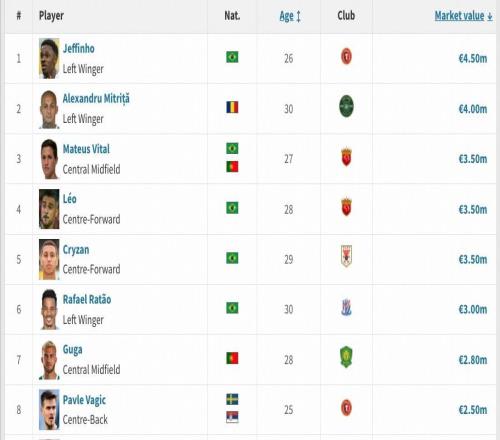 申花新援马克塔盖伊德转身价为250万欧,在目前中超并列第八