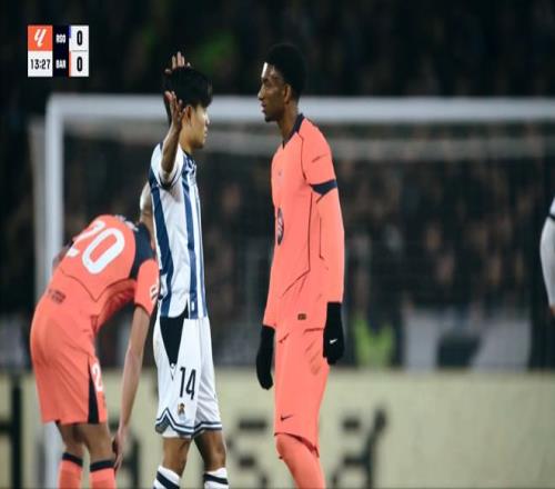 德容、亚马尔先后破门,但是均为越位在先,被直接吹掉。第32分钟,皇家社会发动快速反击,边路送出精彩的传中,后点插上的奥亚萨瓦尔近距离抽射破门,1:0!落后的巴塞罗那频繁向对手的禁区发动猛攻,亚马尔禁区闪转腾挪劲射被扑出!补时的最后一分钟,亚马尔造点球,但是依旧因为越位在先,直接吹掉!半场比赛结束,巴萨暂时一球落后。