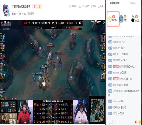 此前在首轮以3:0淘汰了iG的BLG上单选手Bin在B站直播间观看本场比赛,位列直播间榜一。